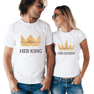 Paar T-Shirts King & Queen personalisiert mit Namen