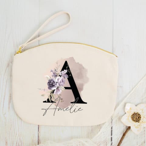 personalisierte Kosmetiktasche mit Name und Initiale Violett