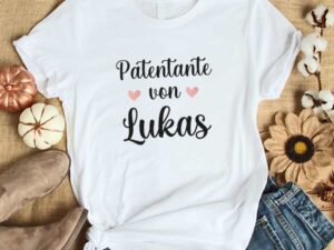 Personalisiertes Damen T-Shirt „Patentante von“ mit Namen aus 100% Baumwolle