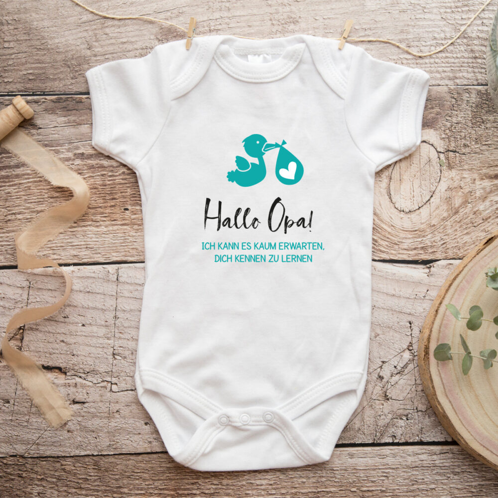 Möchtest du deine Schwangerschaft deinem Papa auf kreative Art und Weiße mitteilen ? Schenke Ihr doch einen unserer Bodies mit dem Spruch „Hallo Opa! Ich kann es kaum erwarten dich kennen zu lernen“ in pink. Freudentränen sind hier garantiert!