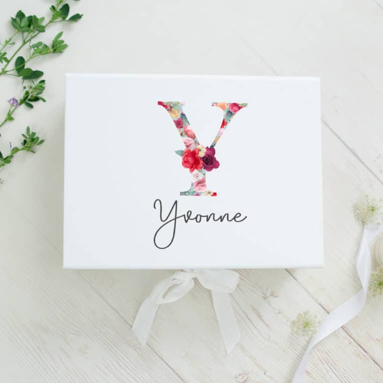 Geschenkbox personalisiert mit Name und Buchstabe Flowerbomb