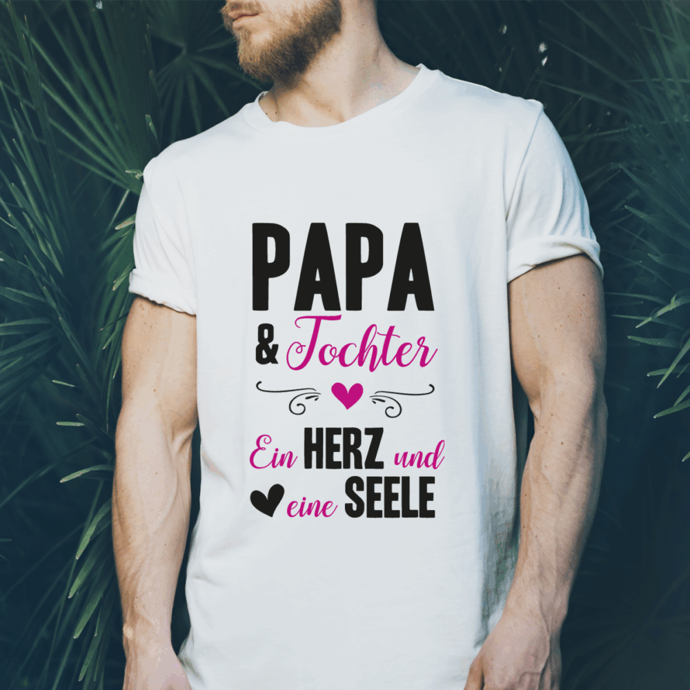 Herren T-Shirt „Papa & Tochter. Ein Herz und eine Seele.“ weiß aus 100% Baumwolle