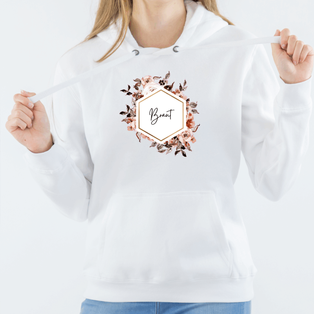 Ihr seid auf der Suche nach tollen Produkten für den Junggesellenabschied? Ihr plant einen JGA im Herbst oder Winter und wollt trotz Kälte trotzdem passende Outfits haben? Wie wäre es mit einem weißen Hoodie für die Braut und für die Crew Hoodies in schwarz oder einer anderen Farbe. Unsere Hoodies sind kuschelige Pullover mit Kaputze und flauschigem Innenfleece. Wir haben übrigens auch passende Mützen im Shop für euren Junggesellenabschied. Unsere Hoodies sind waschbar bei 30 Grad – wir empfehlen keinen Trockner! Du kannst aus 24 verschiedenen Aufdruck-Farben auswählen, oder das Motiv einfach so wie auf dem Bild bestellen. Es gibt zehn verschiedene Hoodie-Farben: weiß, schwarz, dunkelgrau, navy, hellblau, mint, sand, altrosa, burgunder, hellgrau. Unsere JGA Hoodies sind der Hingucker auf jedem Fest und Event.