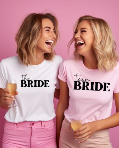 Unsere Damen-Textilien mit dem Aufdruck Bride oder Team Bride bestehen zu 100% aus Baumwolle und sind nicht nur ein witziges Geschenk, sondern auch eine gelungene Überraschung für die Braut an ihrem Junggesellenabschied.