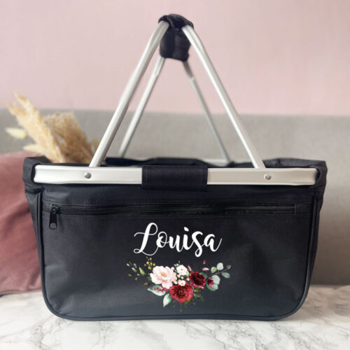 Jetzt neu bei Herzpost: Eine tolle Geschenkidee für deine Freundin, deine Oma bzw. Mama zum Geburtstag , Muttertag oder einen andrent ollen Anlass! Der personalisierter Einkaufskorb mit Name und Blumen ist der absolute Hingucker als Geschenk auf einem Geburtstag, Muttertag oder zu Weihnachten. Egal ob du dich selber oder deine Liebsten beschenken möchtest, unser Korb ist ein tolles Geschenk für den Alltag. Egal ob zum Einkaufen oder für andere Tätigkeiten! Ein kleiner Einkauf kann darin transporiert werden, den der Korb hat eine Tragkraft von circa 18 Kilo. Die Maße des Korbes sind: 45x25x25cm. Außerdem ist der tolle Einkaufskorb faltbar und somit perfekt, um ihn mit dem Auto mitzunehmen zum nächsten Geschäft. Es sind 4 verschiedene Farben verfügbar in Polyester: Grau, Navy, Schwarz und Rot und Grau in Filz.