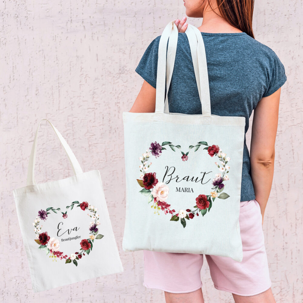 Unsere Taschen für euren Junggesellenabschied bedruckt mit romantischen/lustigen Designs sind für jeden Anlass der Hingucker! Egal ob direkt für die Hochzeit oder für den Junggesellenabschied, in unsere Beutelkönnen die wichtigsten Artikel reingeben werden, die sie benötigt. Außerdem sind unsere Taschen aus 100% Baumwolle und haben lange Trageriffe für ein bequemes Tragen. Es ist außerdem ein Wunschtext möglich, egal ob so wie auf der Abbildung „Team Braut“ oder „Bride“ oder „Braut“ oder „Trauzeugin“ uvm. gebt uns nach dem Kauf einfach euren Wunschtext per Bestellnachricht oder per Email (home@herzpost.com) durch! Wir erfüllen eure Wünsche mit Freude, den wir wissen, wie schön es ist, personalisierte Sachen zu verschenken!