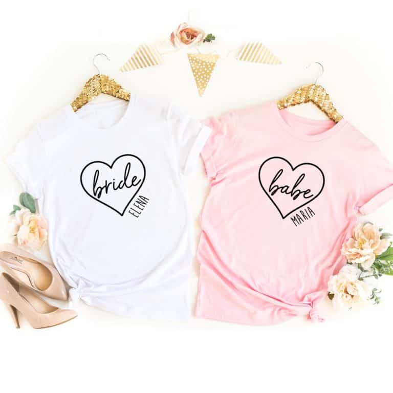 Alle Infos zu unserem JGA Shirt Bride/Babe – Herz auf einen Blick: